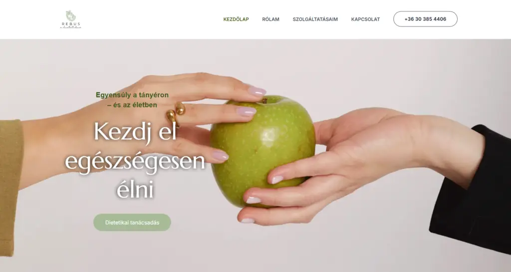 Egy modern, letisztult és bizalmat sugárzó weboldal létrehozása egy dietetikai magánpraxis számára. A cél egy olyan platform volt, amely nemcsak bemutatja a szakértőt, de el is adja a szolgáltatásokat.